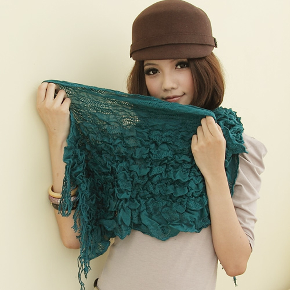 【I-shi】暖呼呼~雙格混織厚款圍巾(藍綠)