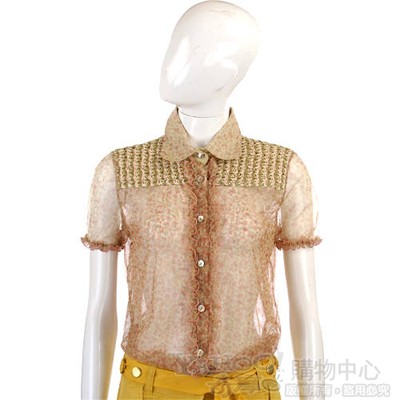 Tucat Chic 粉駝色拼接紗質碎花短袖襯衫 product image 1