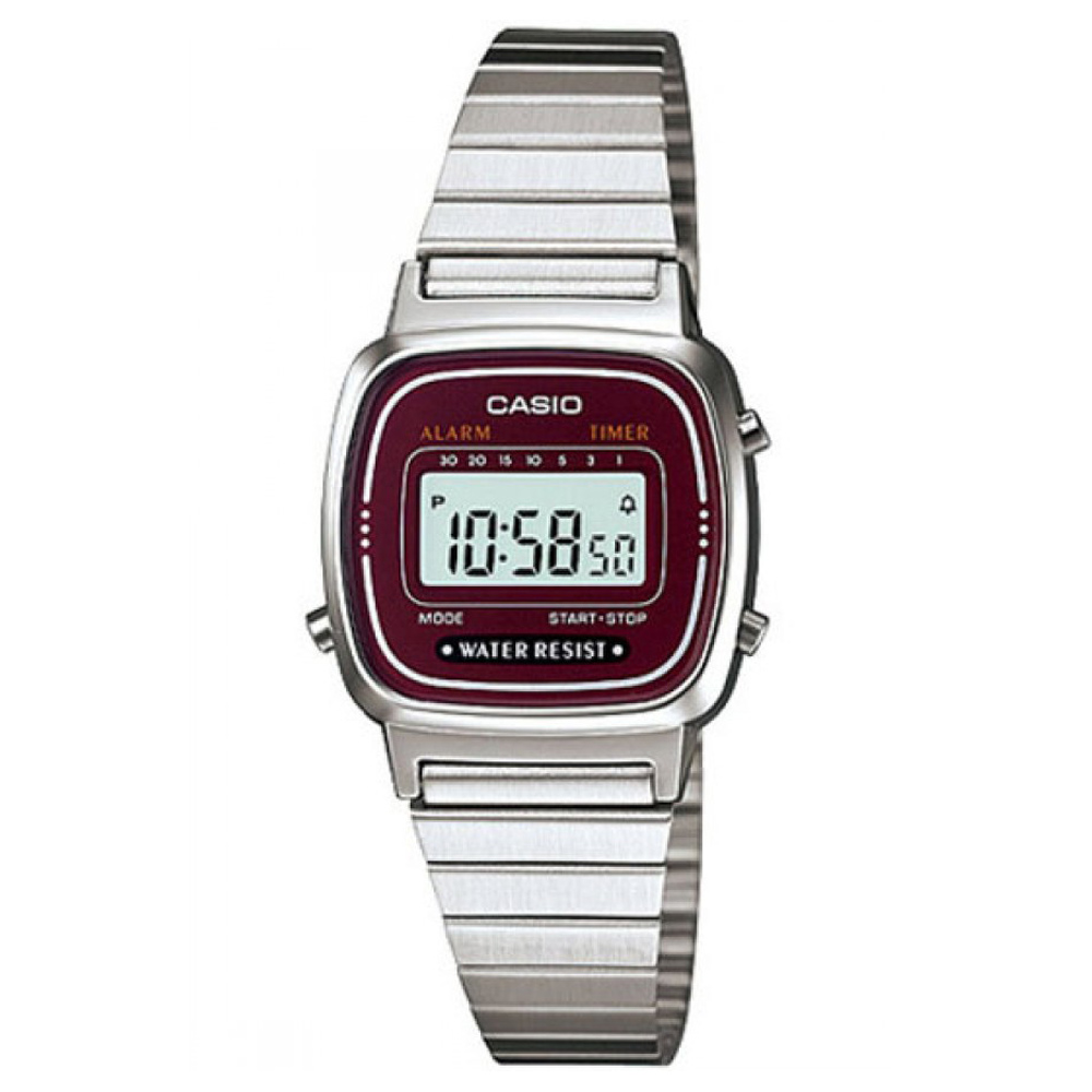 CASIO 經典復古風數位女腕錶(LA670WA-4)-酒紅框/24.6mm / 考試錶 product image 1