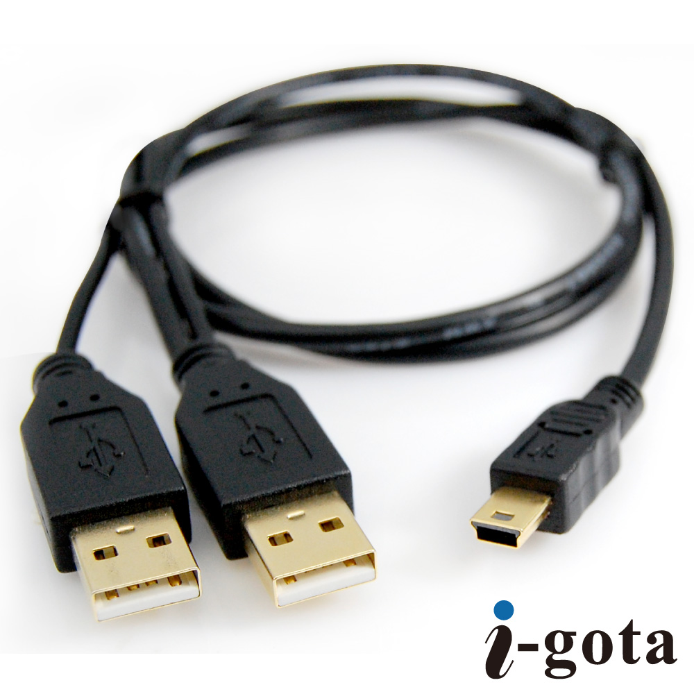 Cable USB2.0高速傳輸線 2A(2公Y型線) - Mini USB公 0.8M product image 1