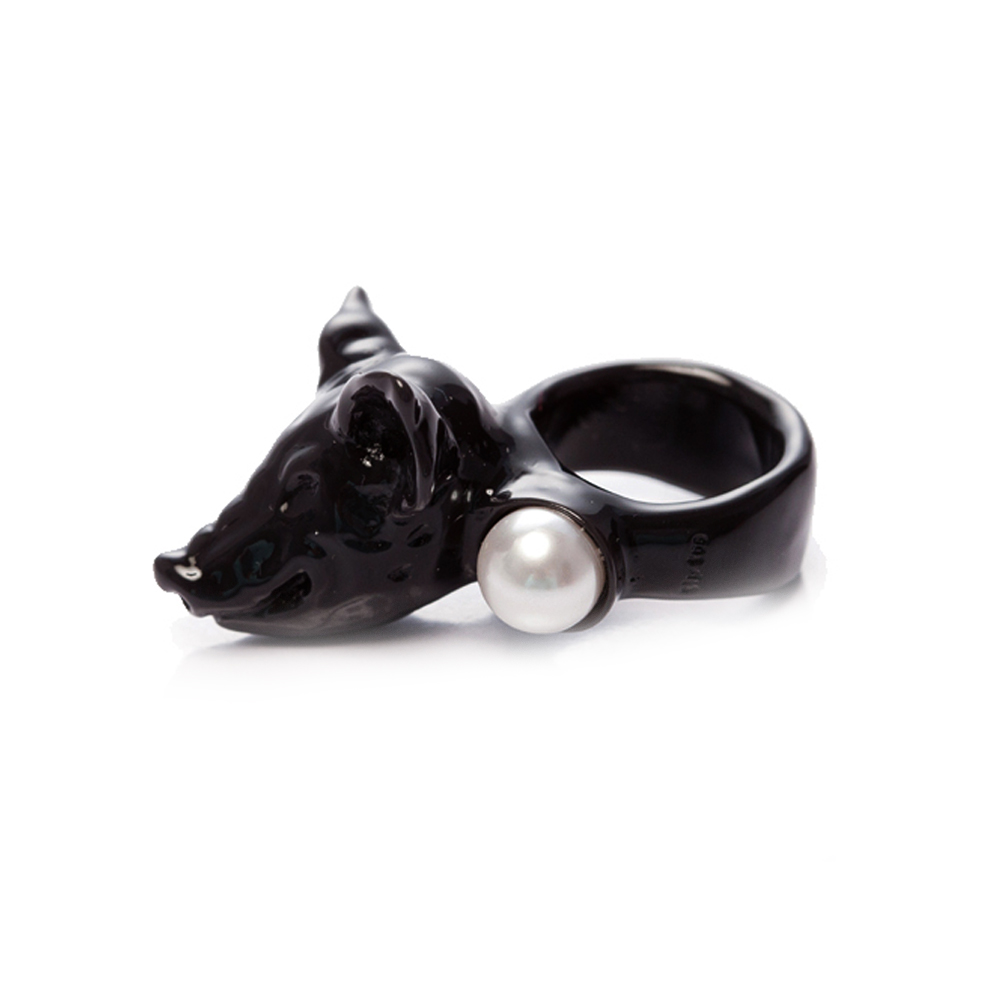 tiptoe by e.m. 逼真小豬頭 壓克力珍珠戒指 (Black) product thumbnail 1