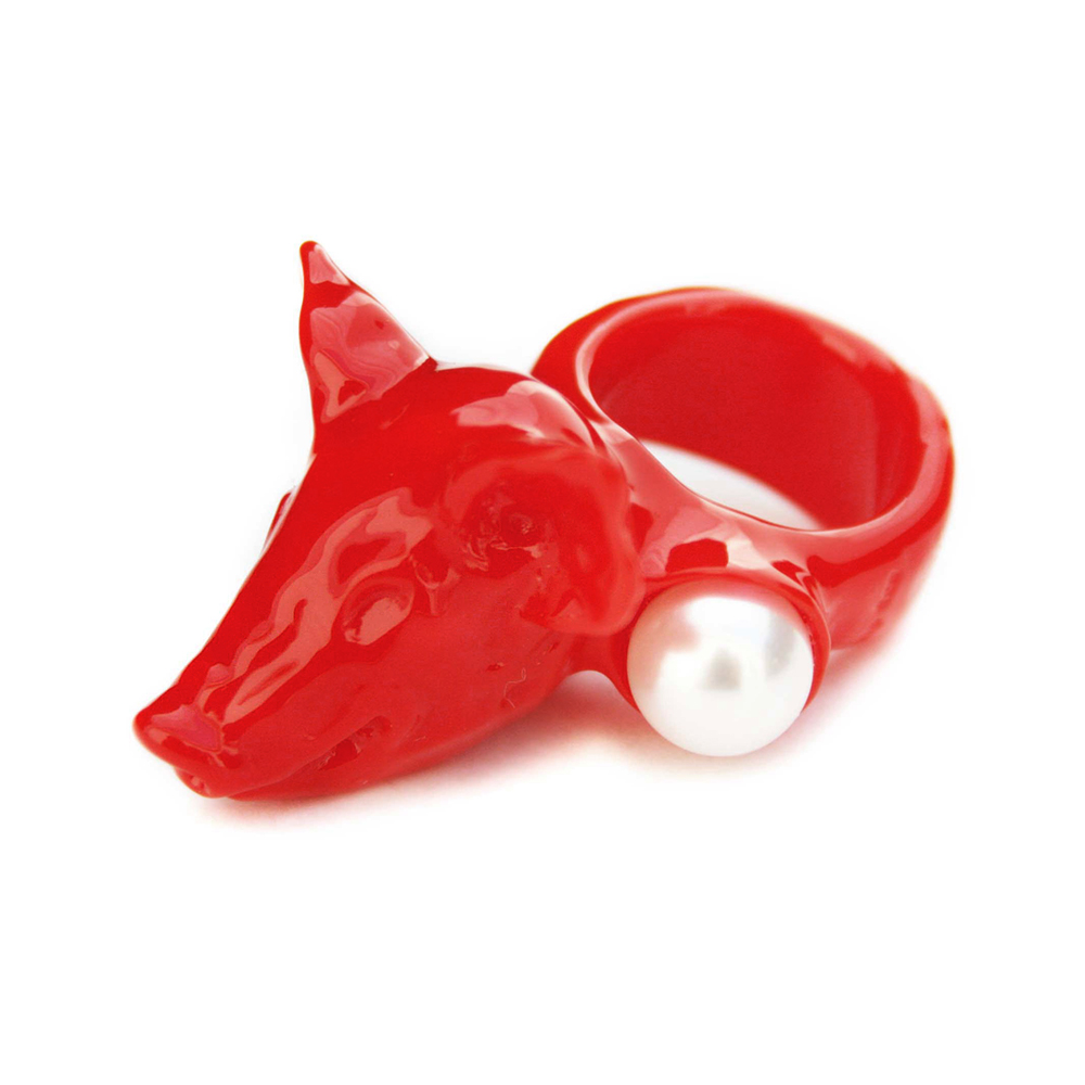 tiptoe by e.m. 逼真小豬頭 壓克力珍珠戒指 (Strong Red) product image 1