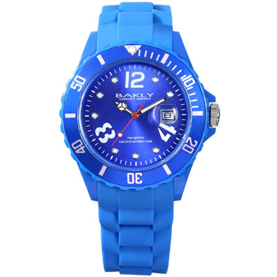 BAKLY 彩艷亮麗人生日期時尚腕錶-藍/43mm product thumbnail 1BAKLY 彩艷亮麗人生日期時尚腕錶-藍/43mm product thumbnail 2