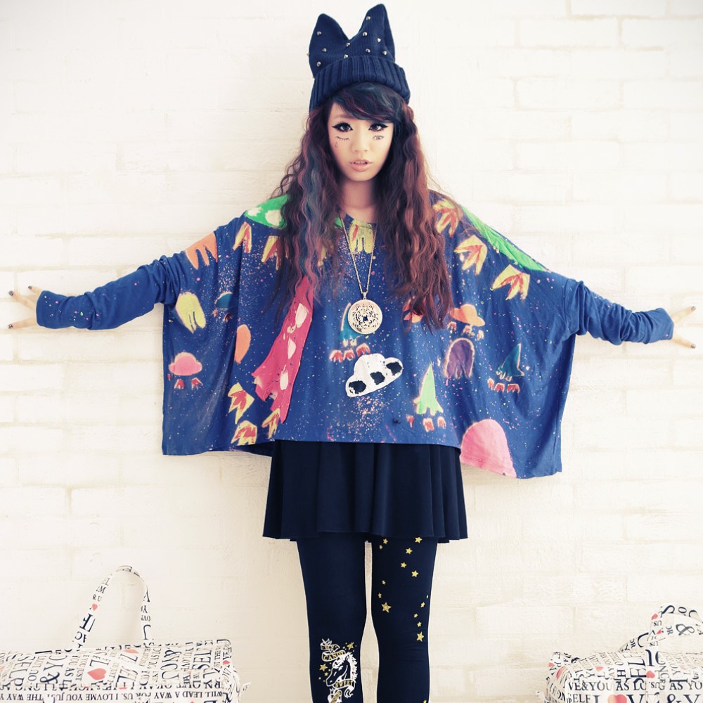 La Belleza彩色噴墨繽紛外太空飛碟火箭柔棉斗篷上衣 product image 1