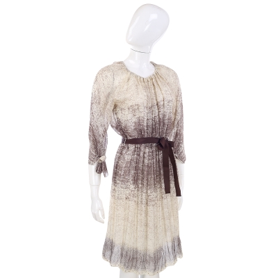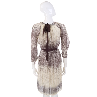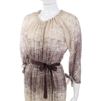 PHILOSOPHY-AF 米/咖啡色漸層點點圖紋綁帶洋裝