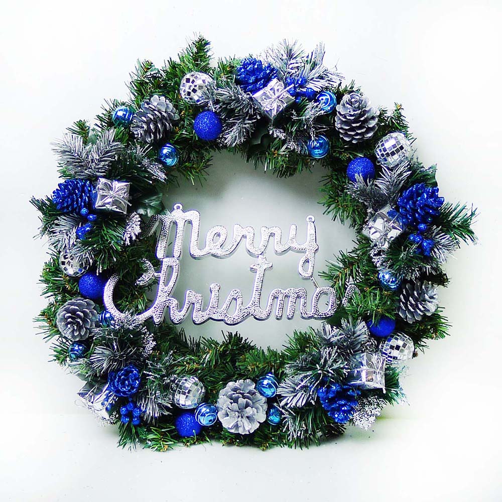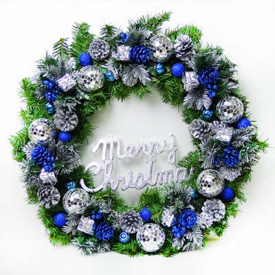 摩達客 台灣製 20吋豪華高級聖誕花圈(藍銀色系)(本島免運費) product thumbnail 1摩達客 台灣製 20吋豪華高級聖誕花圈(藍銀色系)(本島免運費) product thumbnail 2