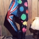 古著 大米字國旗拼接彩色圓點潑墨低檔束口飛鼠褲