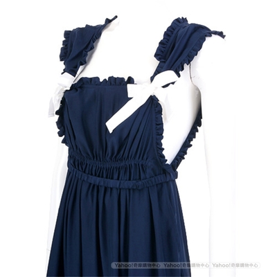 PAOLA FRANI 深藍色皺褶蝴蝶結飾洋裝