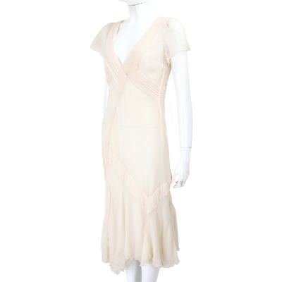 BLUMARINE-ANNA MOLINARI 米白色抓褶V領短袖洋裝 product image 1