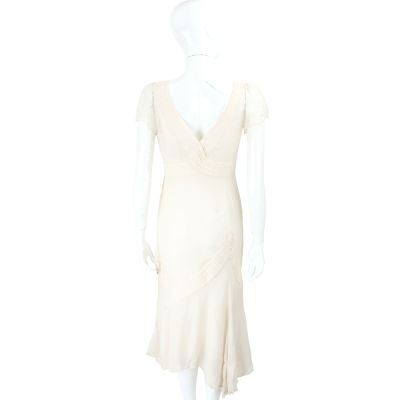 BLUMARINE-ANNA MOLINARI 米白色抓褶V領短袖洋裝