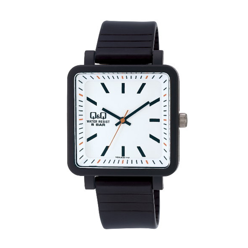Q&Q 日系個性方正混搭泡泡糖潮流錶-白x黑框/38mm