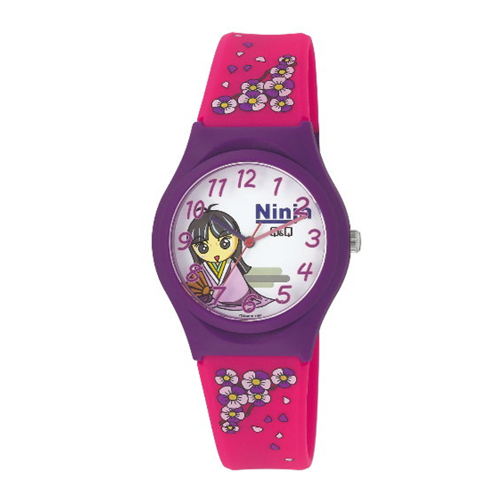 Q&Q 日系古城堡神秘忍法帖卡通腕錶-白x紫框/35mm