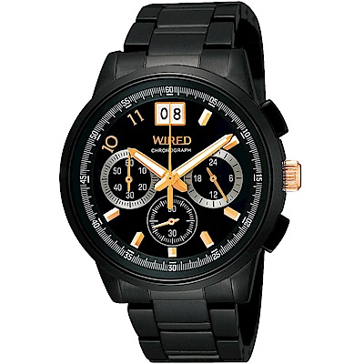 WIRED 國王與你大視窗三眼計時腕錶 雙12購物節 送禮首選-IP黑/40mm (VK73-X004SD)