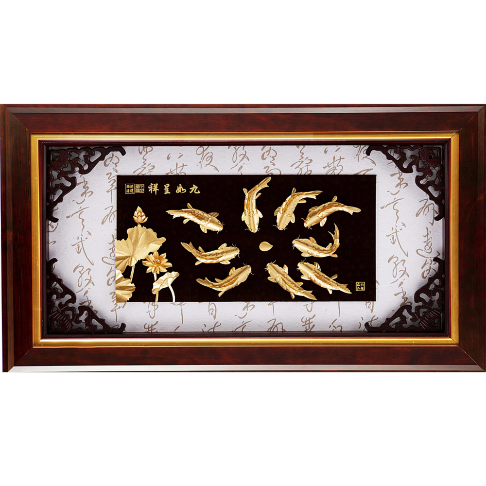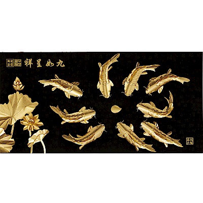 開運陶源 金箔畫 純金(精緻系列) 錦鯉(九如呈祥)