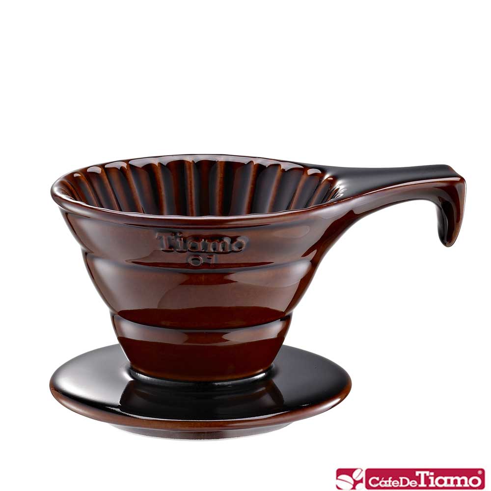 Tiamo V01長柄陶瓷咖啡濾杯組-咖啡色(HG5533BR)