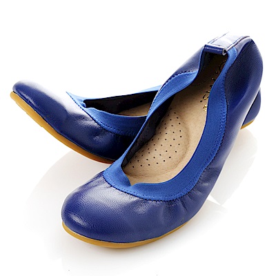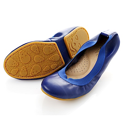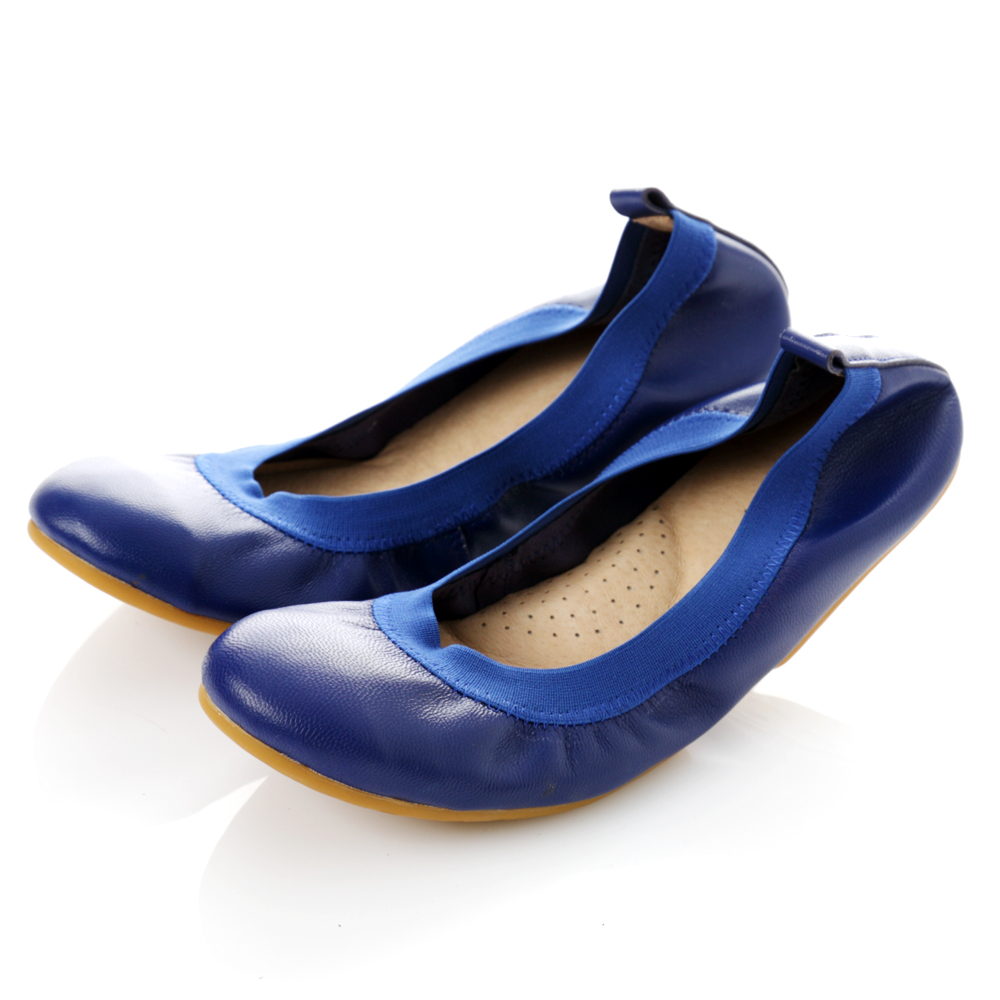 【G.Ms.】旅行女孩II‧素面鬆緊口全真皮可攜式軟Q娃娃鞋‧寶藍 product image 1