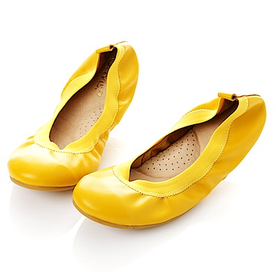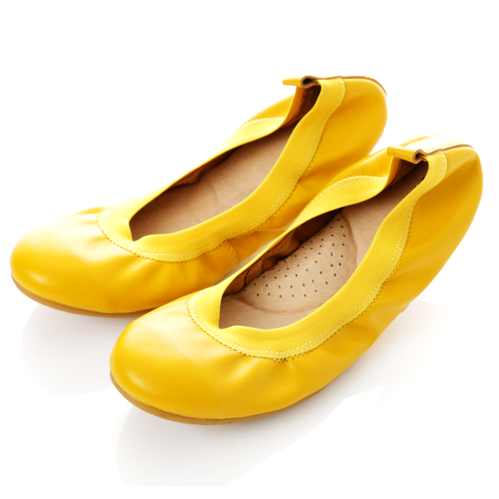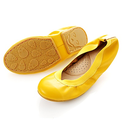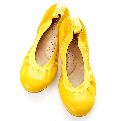 【G.Ms.】旅行女孩II‧素面鬆緊口全真皮可攜式軟Q娃娃鞋‧芥苿黃 product image 1