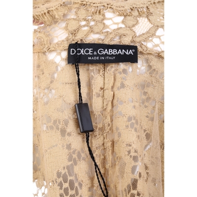 DOLCE & GABBANA 駝色蕾絲七分袖薄長版罩衫外套