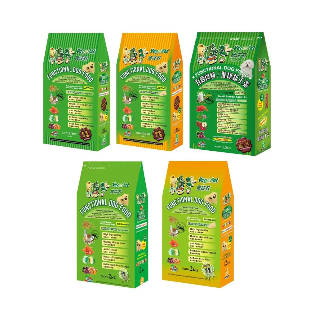 VegePet維吉-機能性狗食-高消化植物蛋白/野菜水果配方 1.5KG~2KG x 2入組(買二件送寵物玩具1個隨機)