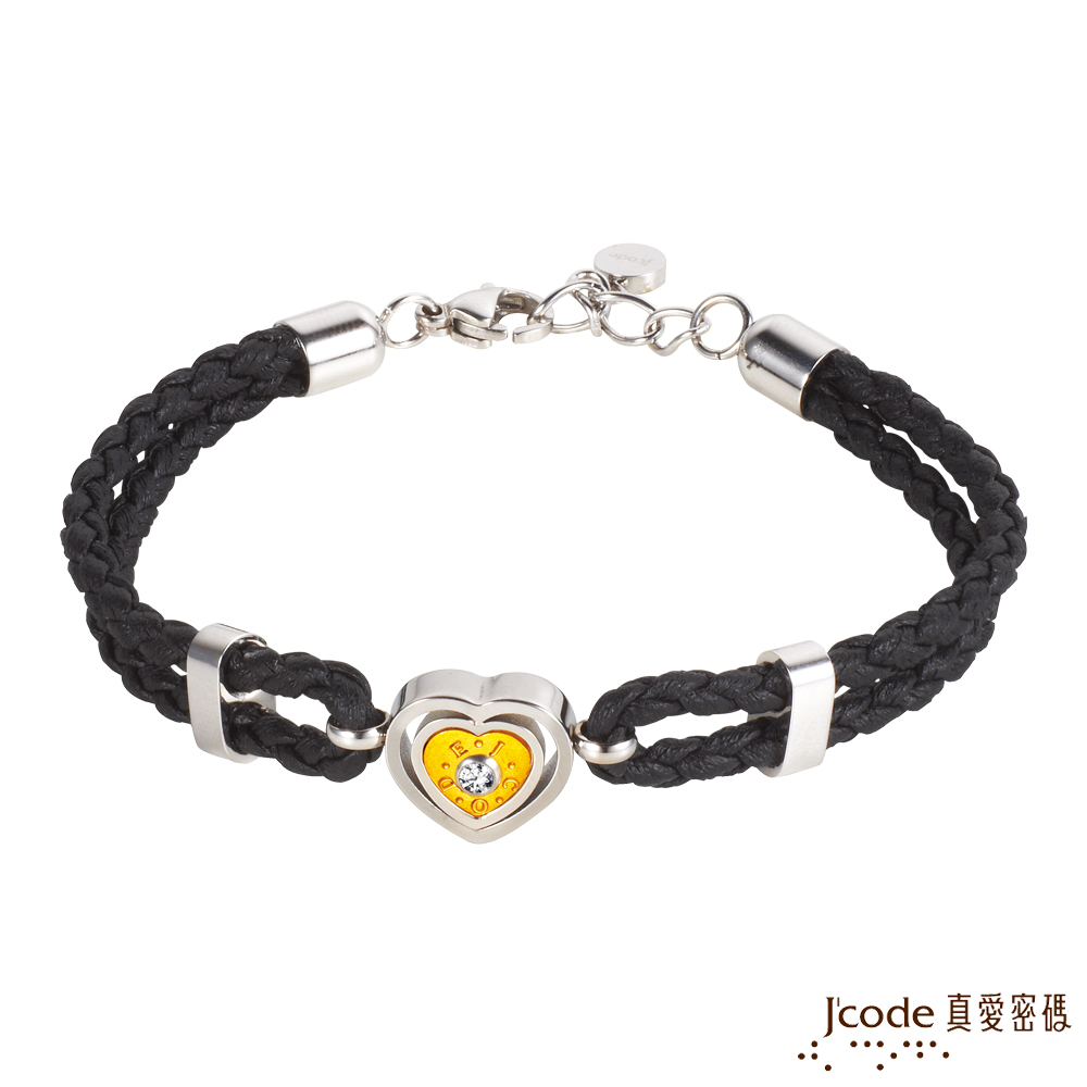 J'code真愛密碼金飾 守護愛 純金+316L白鋼皮手鍊(女)