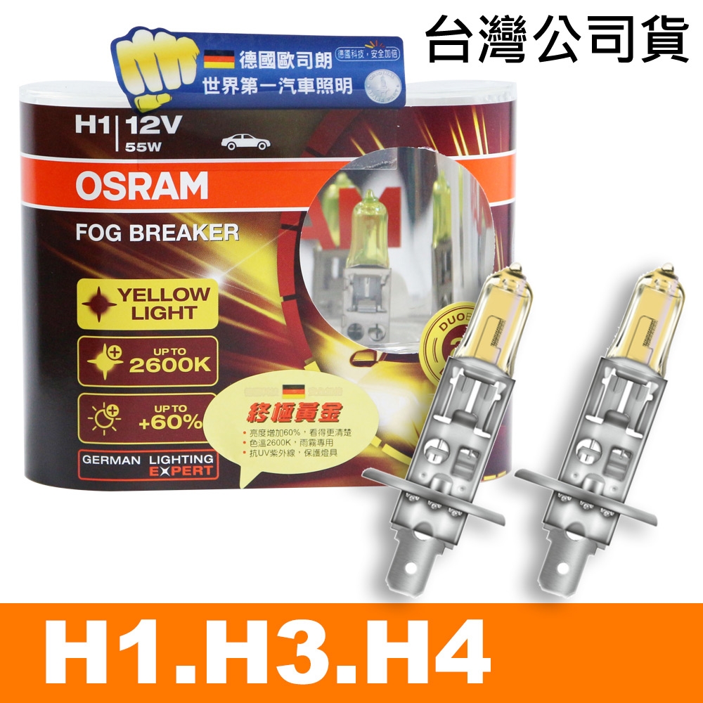 OSRAM 終極黃金 H1/H3/H4 加亮60%汽車燈泡/2600K 公司貨 product image 1