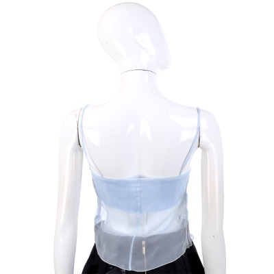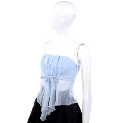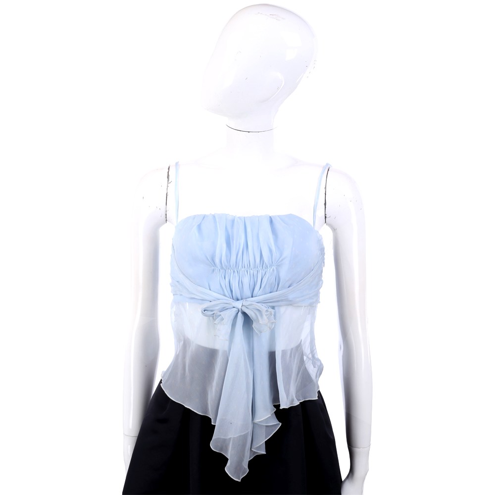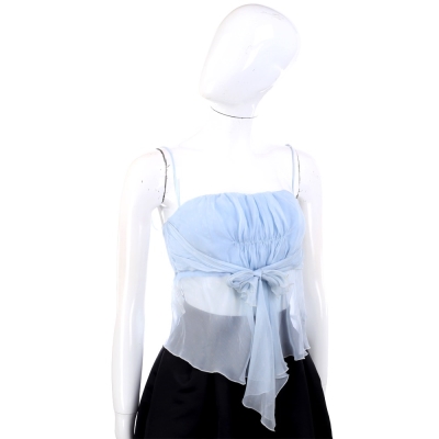 VALENTINO 水藍色紗質抓褶綁帶細肩帶上衣
