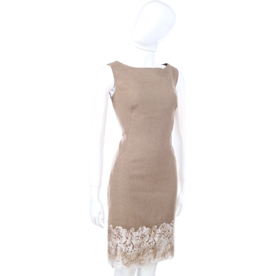 SCERVINO 卡其色圖騰織花拼接設計無袖洋裝 product image 1