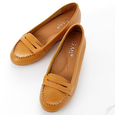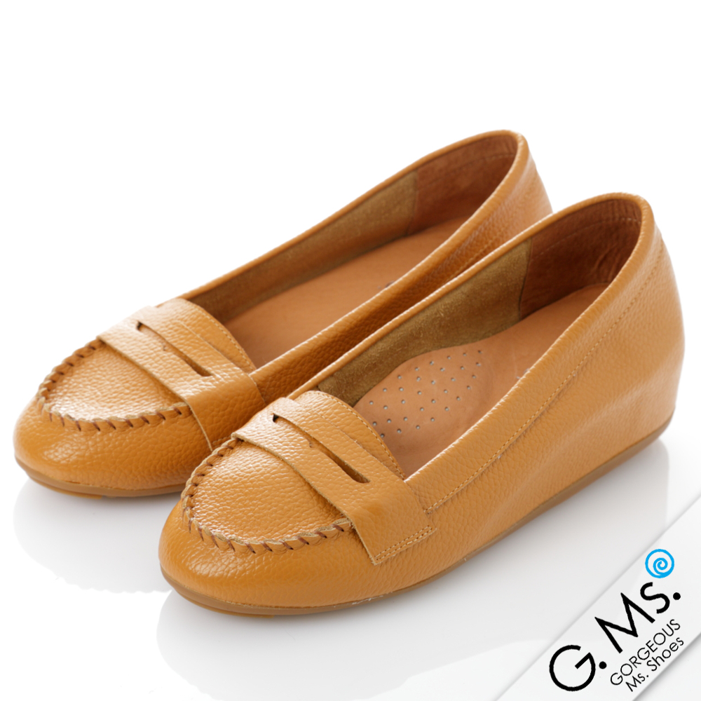 【G.Ms.】Q彈新主張‧簡約莫卡辛真皮內增高豆豆鞋‧焦糖駝