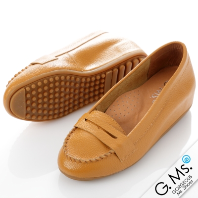【G.Ms.】Q彈新主張‧簡約莫卡辛真皮內增高豆豆鞋‧焦糖駝 product image 1