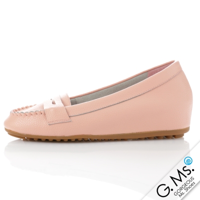 【G.Ms.】Q彈新主張‧簡約莫卡辛真皮內增高豆豆鞋‧櫻花粉 product image 1