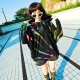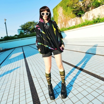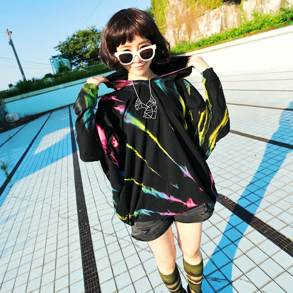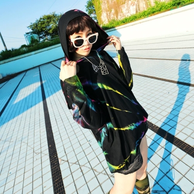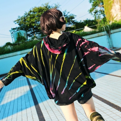 古著 彩色煙花放射狀刷色連帽寬上衣