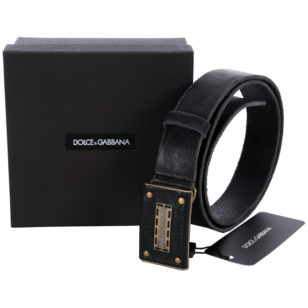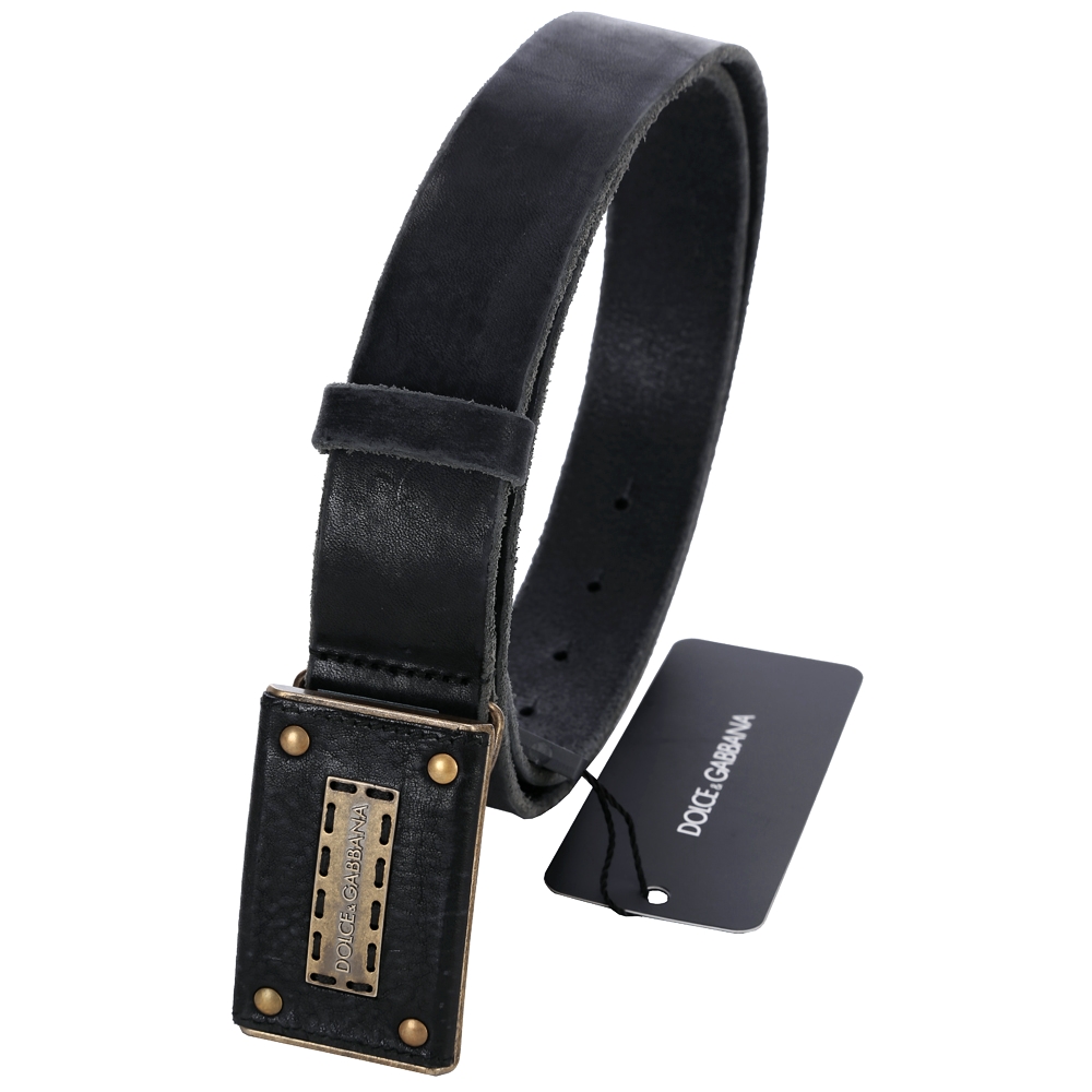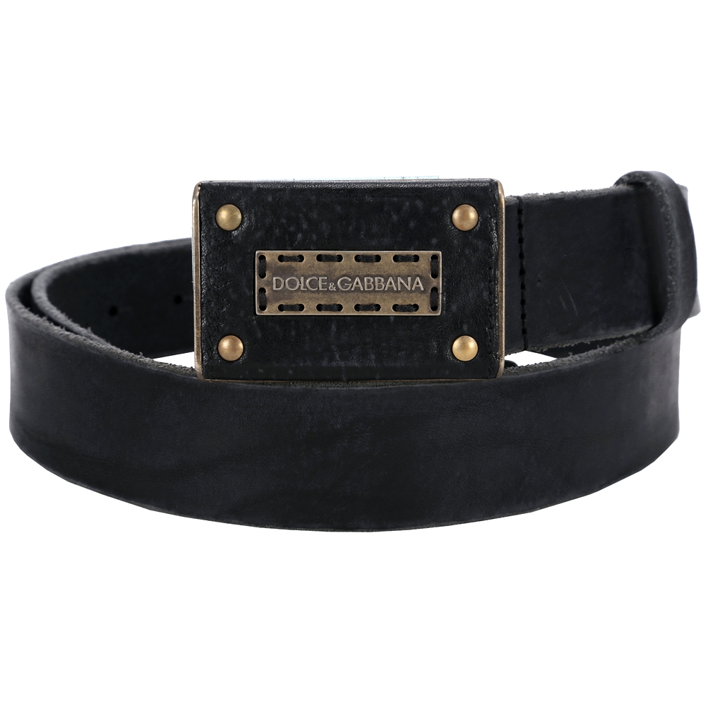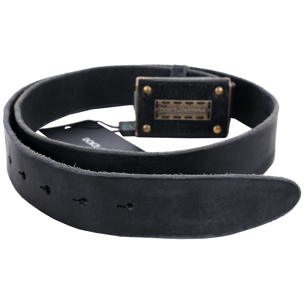 DOLCE & GABBANA 仿舊設計皮革腰帶(深灰色)