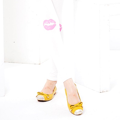【G.Ms.】經典Dolly‧金屬拼接方頭蝴蝶結全平底娃娃鞋‧活力黃