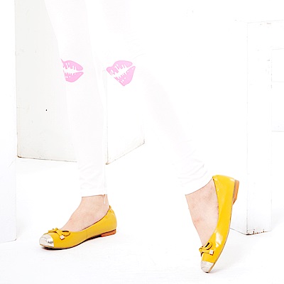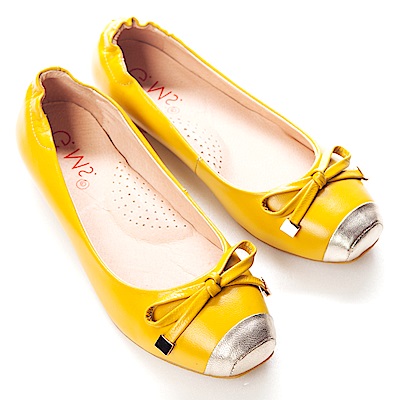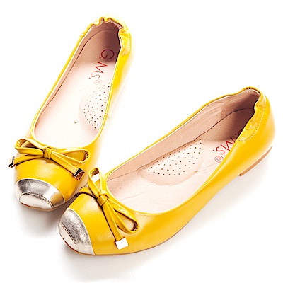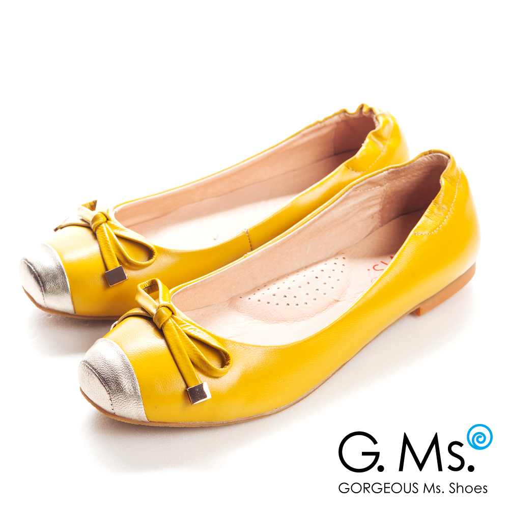 【G.Ms.】經典Dolly‧金屬拼接方頭蝴蝶結全平底娃娃鞋‧活力黃 product image 1