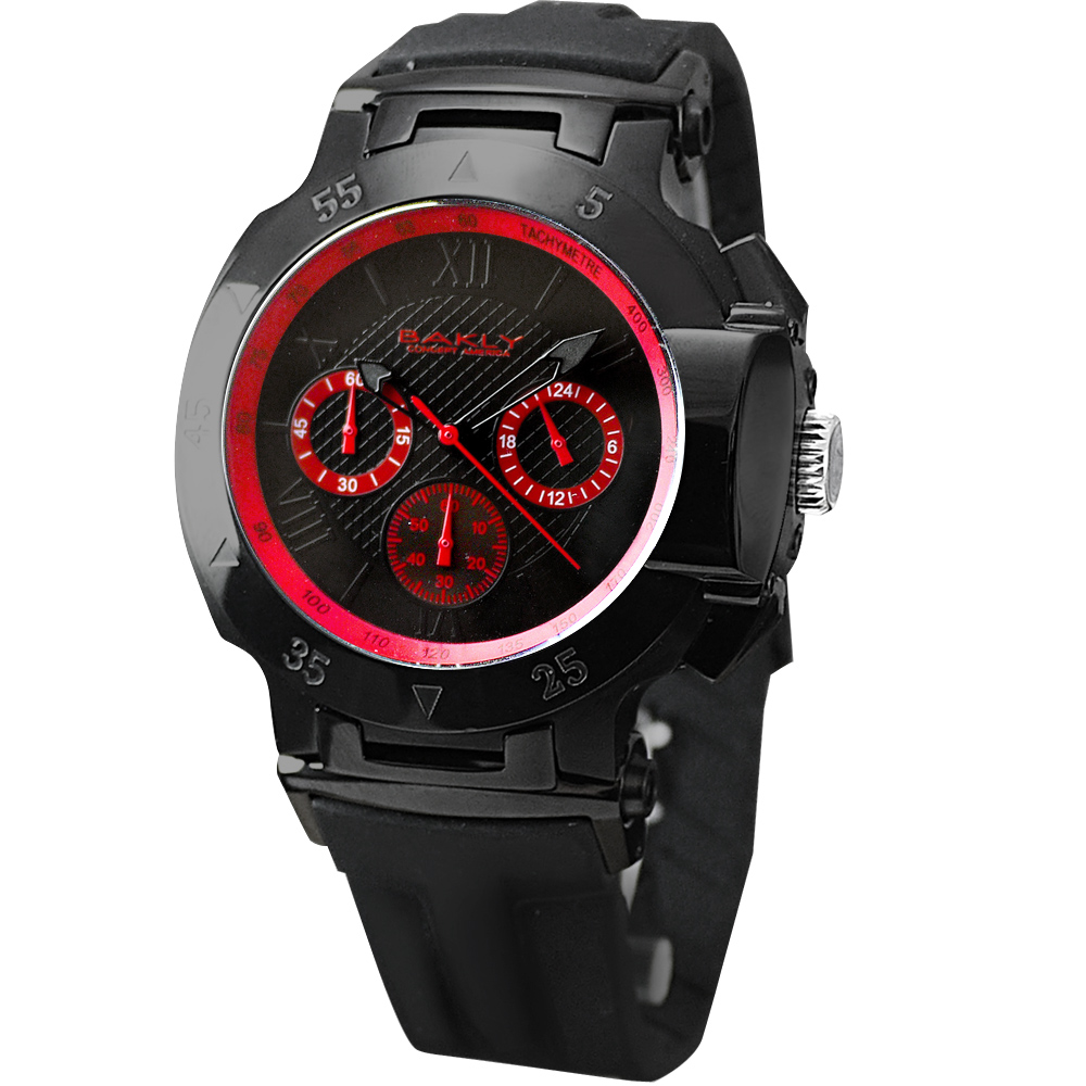BAKLY 極速系列三環計時運動腕錶-黑x紅/黑錶帶/47mm product thumbnail 1BAKLY 極速系列三環計時運動腕錶-黑x紅/黑錶帶/47mm product thumbnail 2