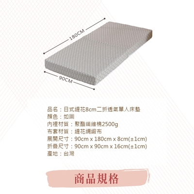 戀香 日式緹花8cm二折透氣床墊-單人3尺