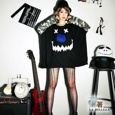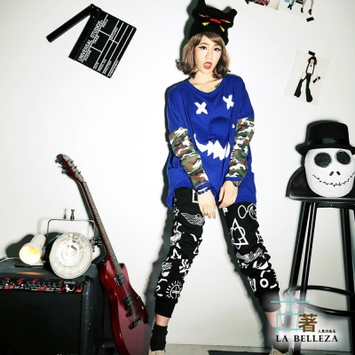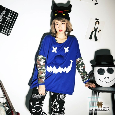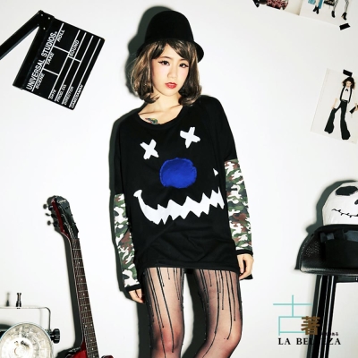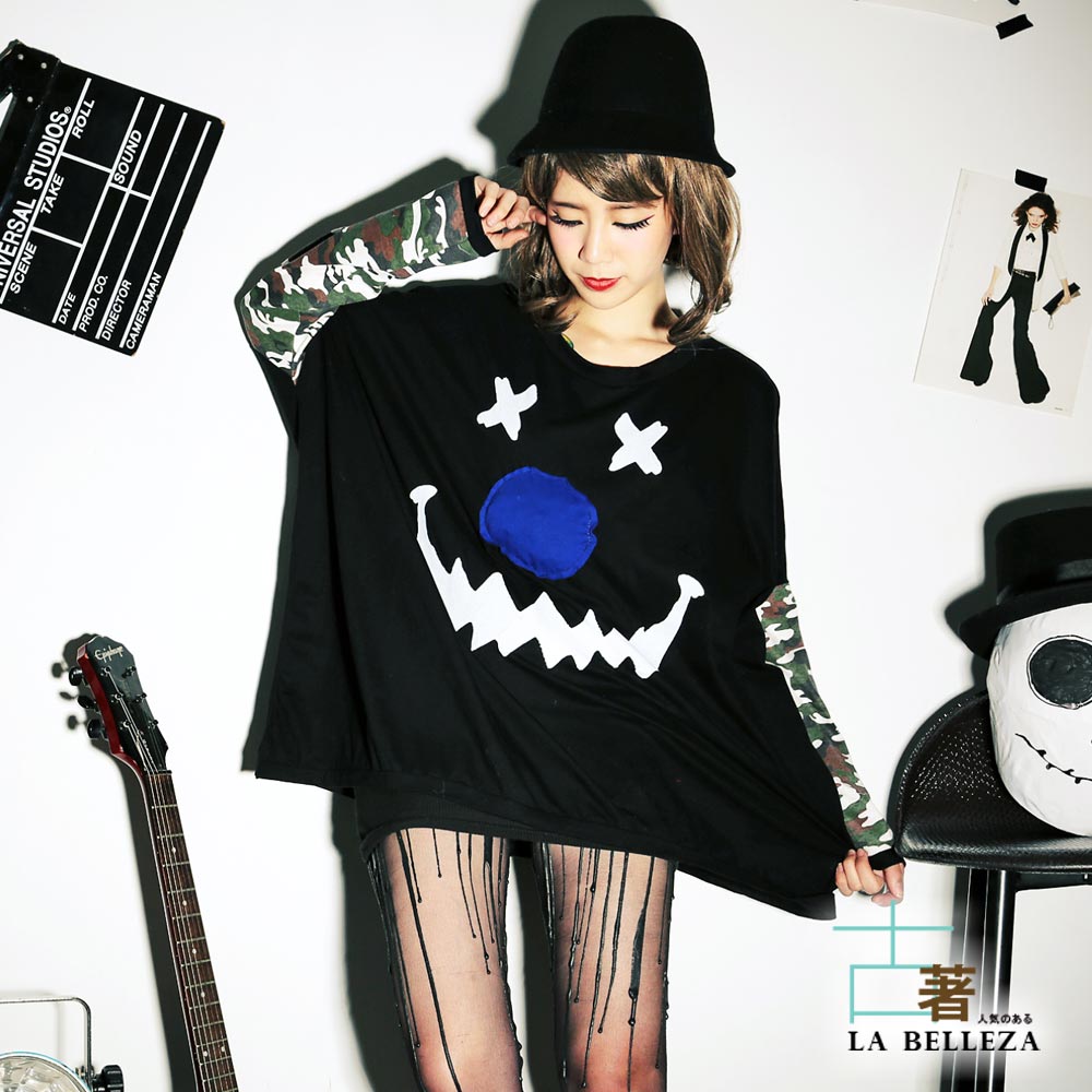 迷彩拉袖小丑鼻子蝙蝠袖寬上衣