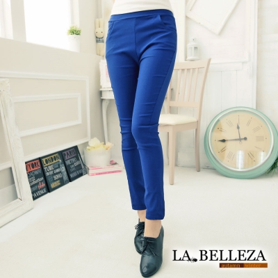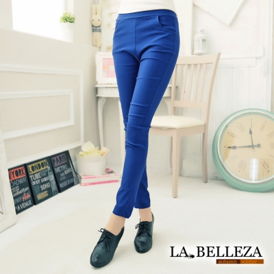 La Belleza顯瘦側口袋腰鬆緊腰挺版修飾窄管褲(卡其,寶藍)