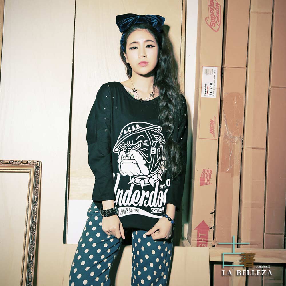 古著 肩繡鉚釘鬥牛犬連袖上衣 product image 1