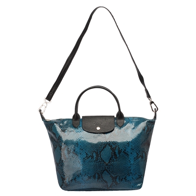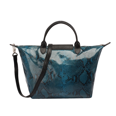 LONGCHAMP LE PLIAGE PYTHON蟒蛇蚊短把手提/斜背包(大-西洋杉藍)