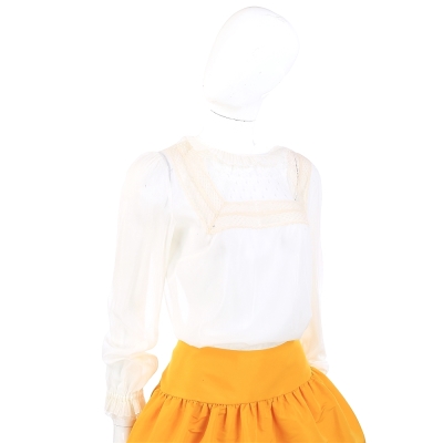 RED VALENTINO 蕾絲拼接紗質長袖上衣(白色) product image 1