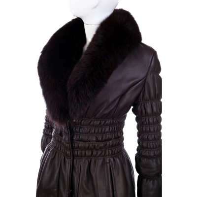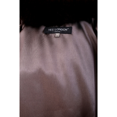 YES LONDON 咖啡色毛領車縫皺褶皮外套