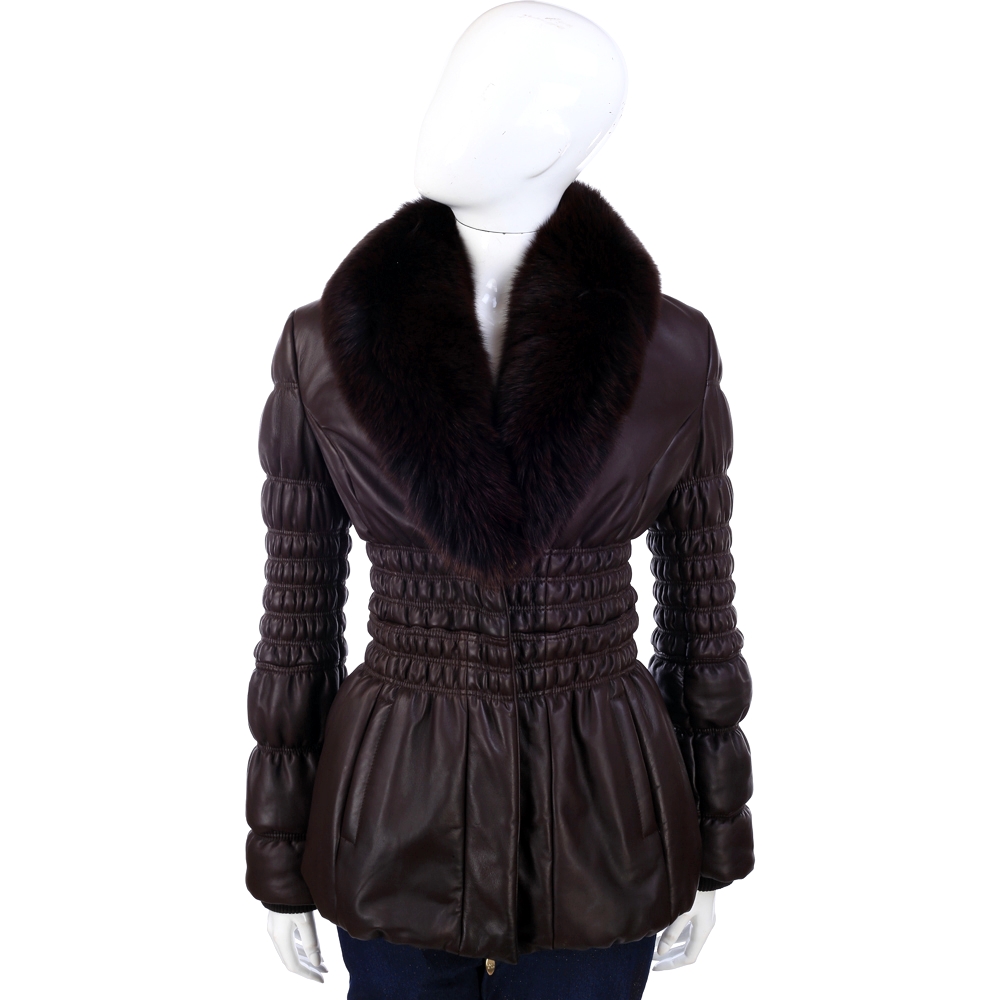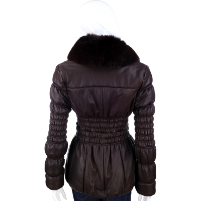 YES LONDON 咖啡色毛領車縫皺褶皮外套 product image 1