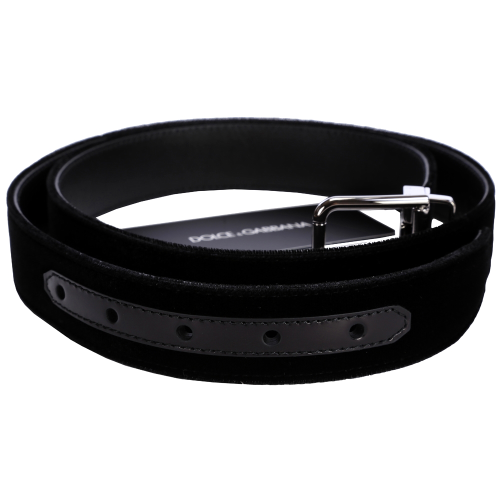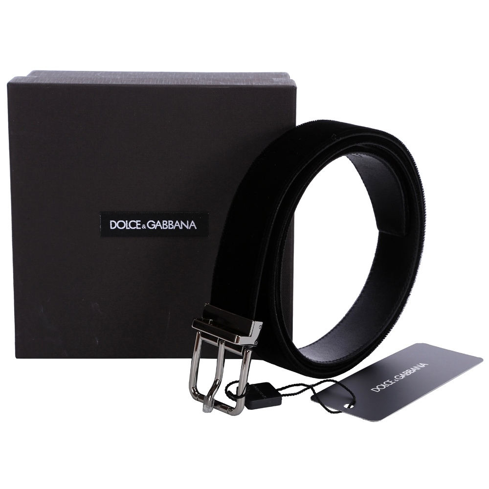 DOLCE & GABBANA 絨面牛皮設計皮帶(黑色)