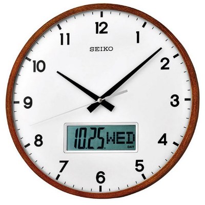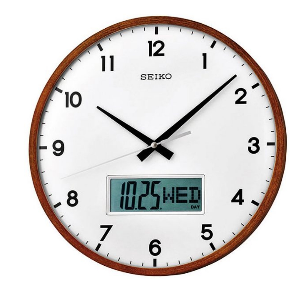 SEIKO 精工 時鍾 木質外殼 恆動式秒針雙顯 靜音掛鐘 QXL008B -白/33cm product image 1