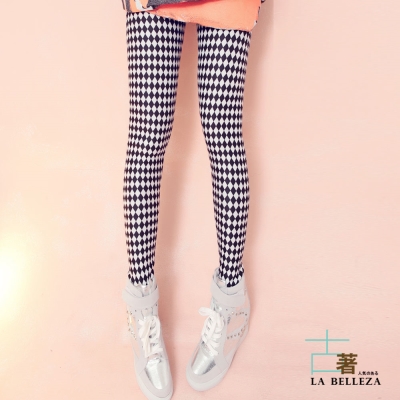 古著 黑白菱格內裡加絨保暖彈性厚棉磨毛內搭褲