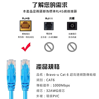 Bravo-u Cat6超高速傳輸網路線(10米) product image 1
