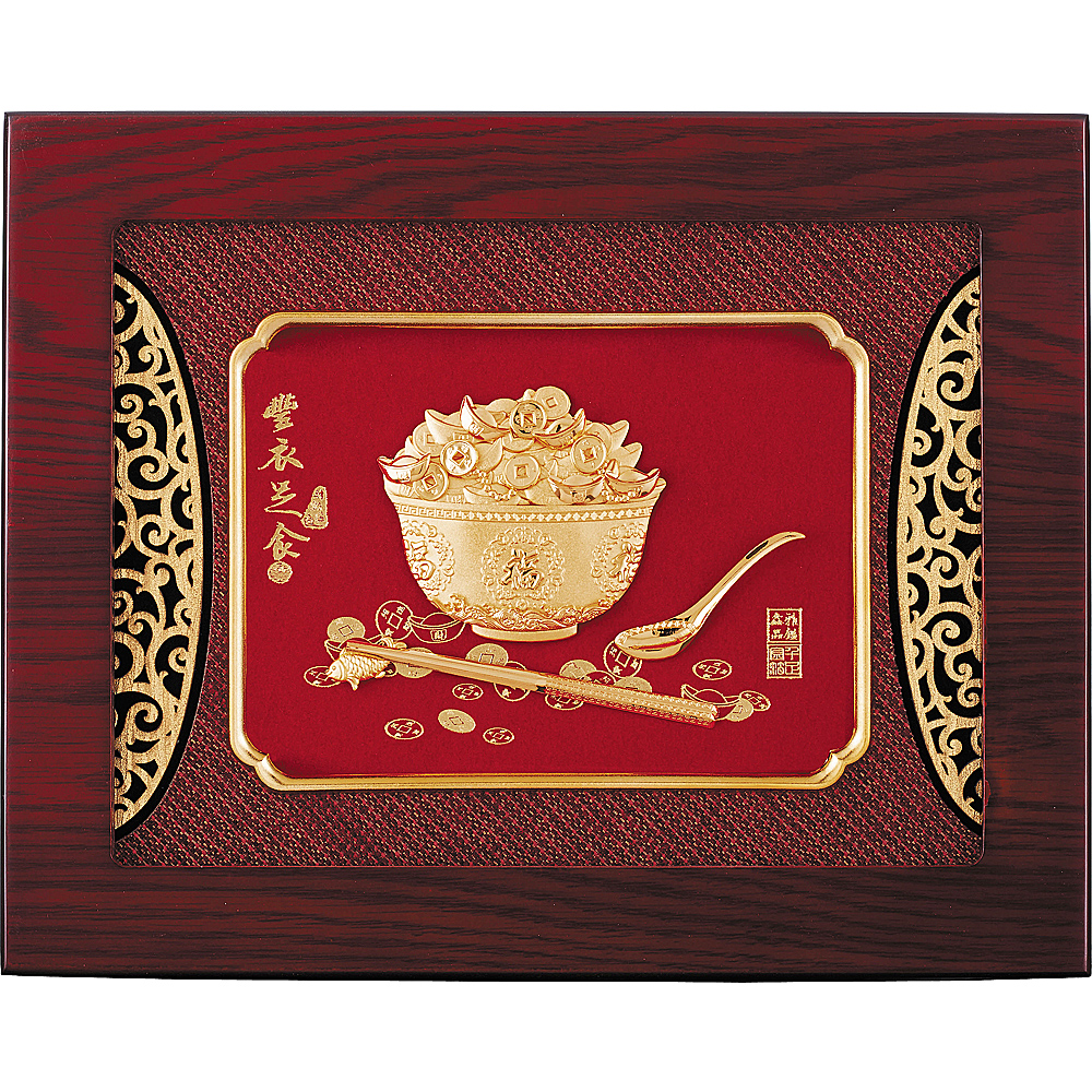 開運陶源 金箔畫-豐衣足食 金飯碗 34x27cm 純金