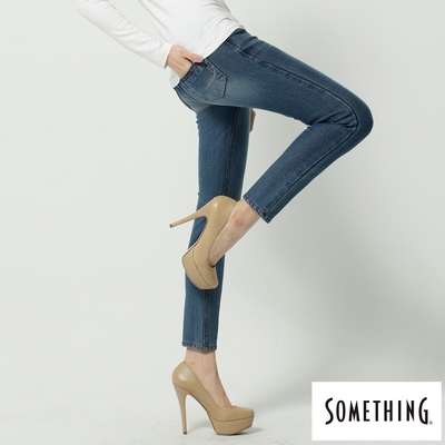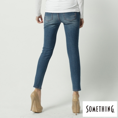 SOMETHING 女裝 NEO FIT 保溫窄直筒牛仔褲-拔淺藍