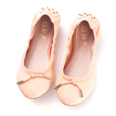 G.Ms. 輕旅行-全真皮單結蝴蝶結折疊豆豆鞋-蜜粉橘 product image 1